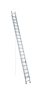 Aluminum extension ladder has an ansi type i ladder rating and a load rating of up to 250 lbs.